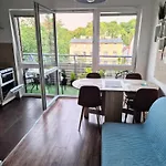 Tot de voorzieningen voor self-catering behoort een ingerichte kitchenette met een koffie/theezetapparaat, een koelkast en een oven. Het is op 5 minuten wandelafstand van de dichtstbijzijnde bushalte Grunwaldzka 01 opgericht.